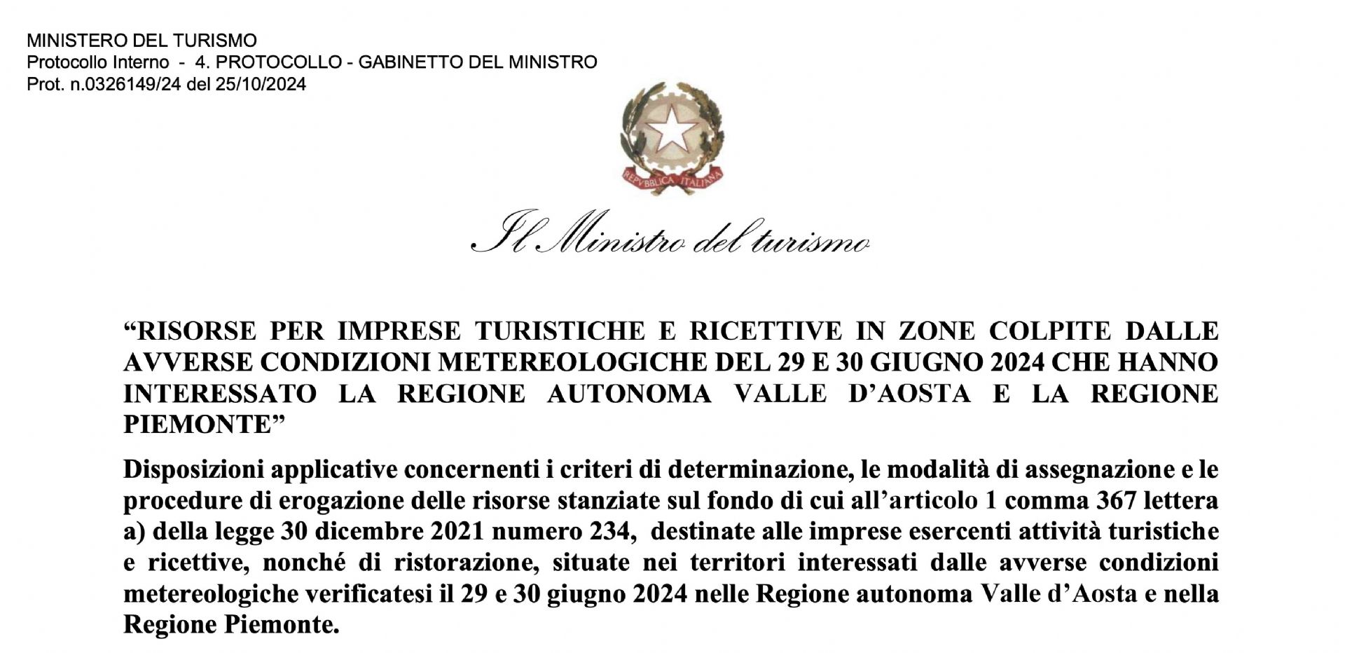 Risorse per le imprese turistiche e ricettive in zone colpite dalle avverse condizioni metereologiche del 29 luglio e 30 giugno 2024 che hanno interessato la regione autonoma della valle d'Aosta e la regione Piemonte