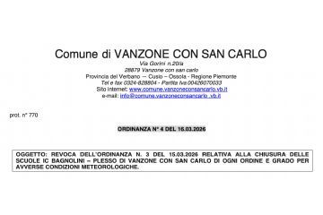 chiusura del plesso scolastico di Vanzone con San Carlo – IC Bagnolini di Villadossola (VB) di ogni ordine e grado (materna-primaria e secondari